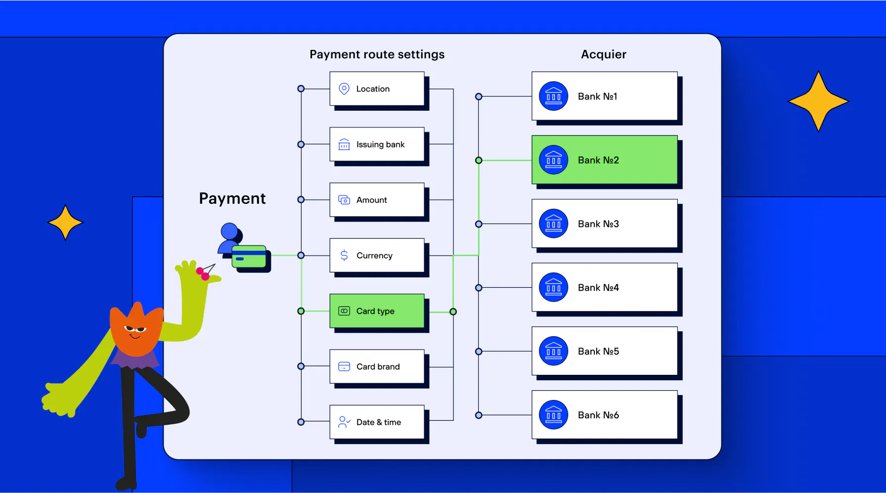 Cascading and routing help ensure a payment conversion of up to 95%. For the buyer, the payment process takes seconds and requires no extra actions. This creates a positive payment experience and increases the likelihood of repeat purchases.