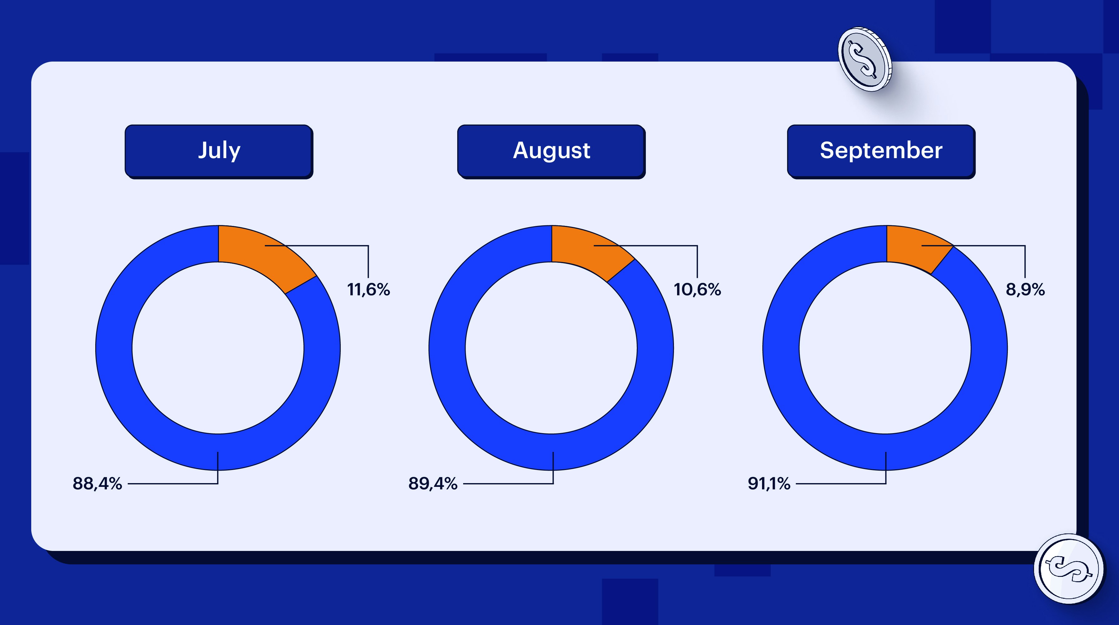 ✅ Decrease in declined transactions by 43% in June compared to May.