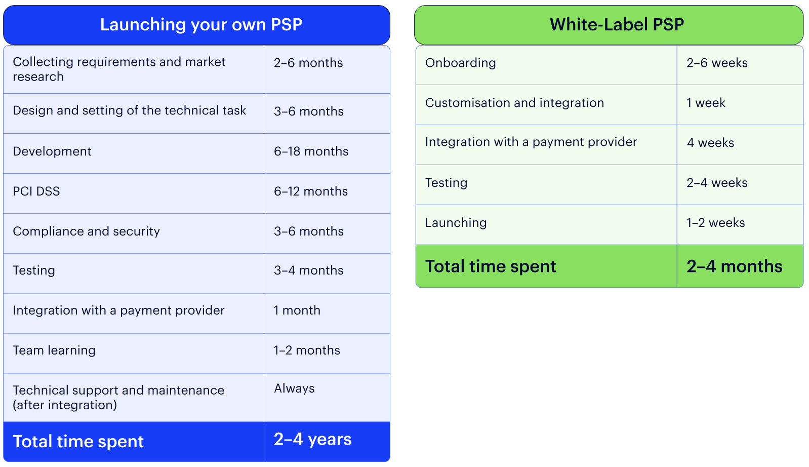 As you can see, there are more than enough arguments ‘in favor’ of a White-Label PSP solution for the quick launch of secure payments worldwide. A ready-made SaaS product frees you from the cost of several million dollars and saves time. This approach is aimed at companies that want to focus on solving global business development tasks instead of managing a development and technical team.