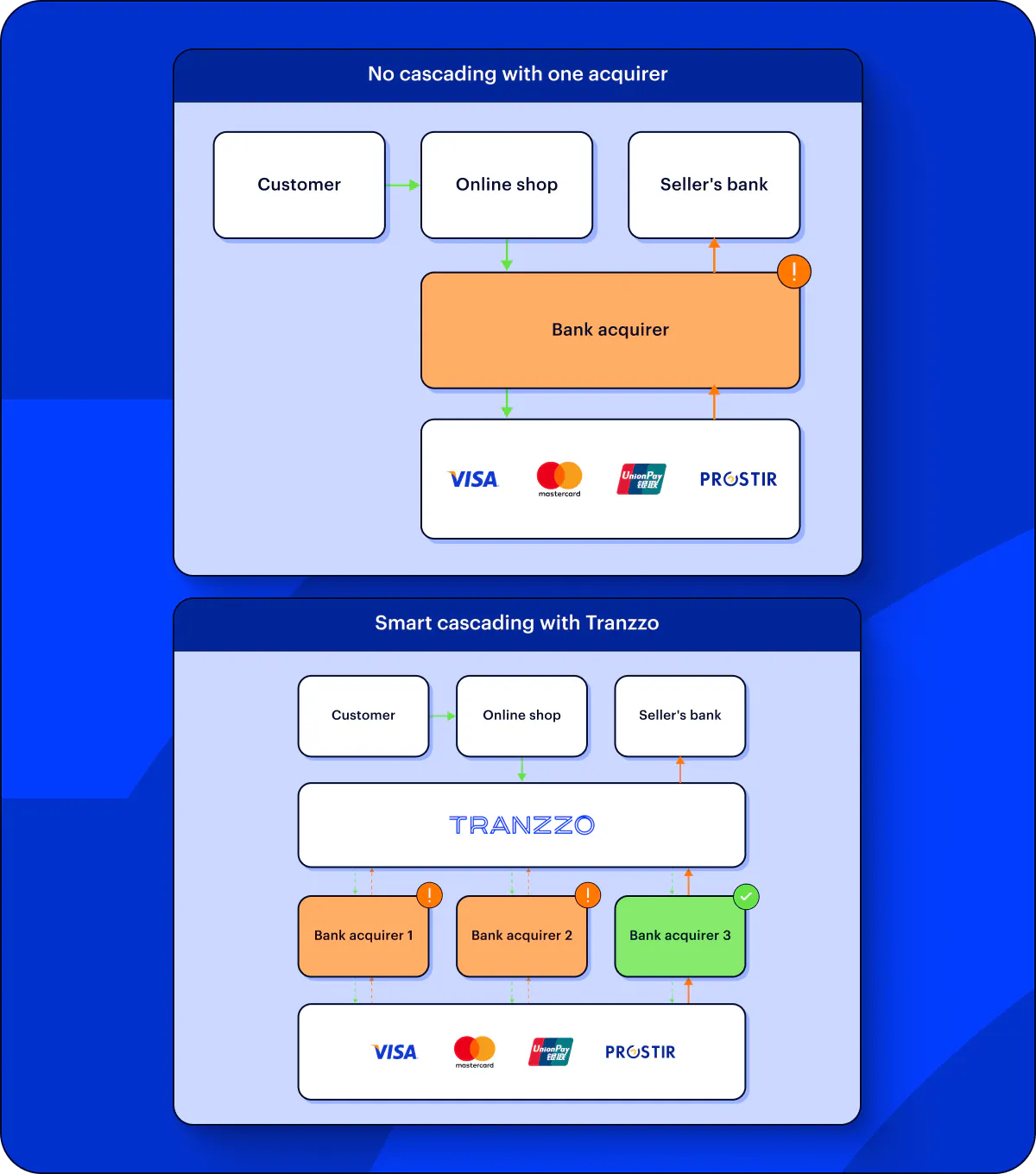 Real-time allocation enables transactions to be evaluated and routed instantly to the best available processor. In case of failed transactions, they are automatically re-routed to alternative processors, significantly reducing declines.