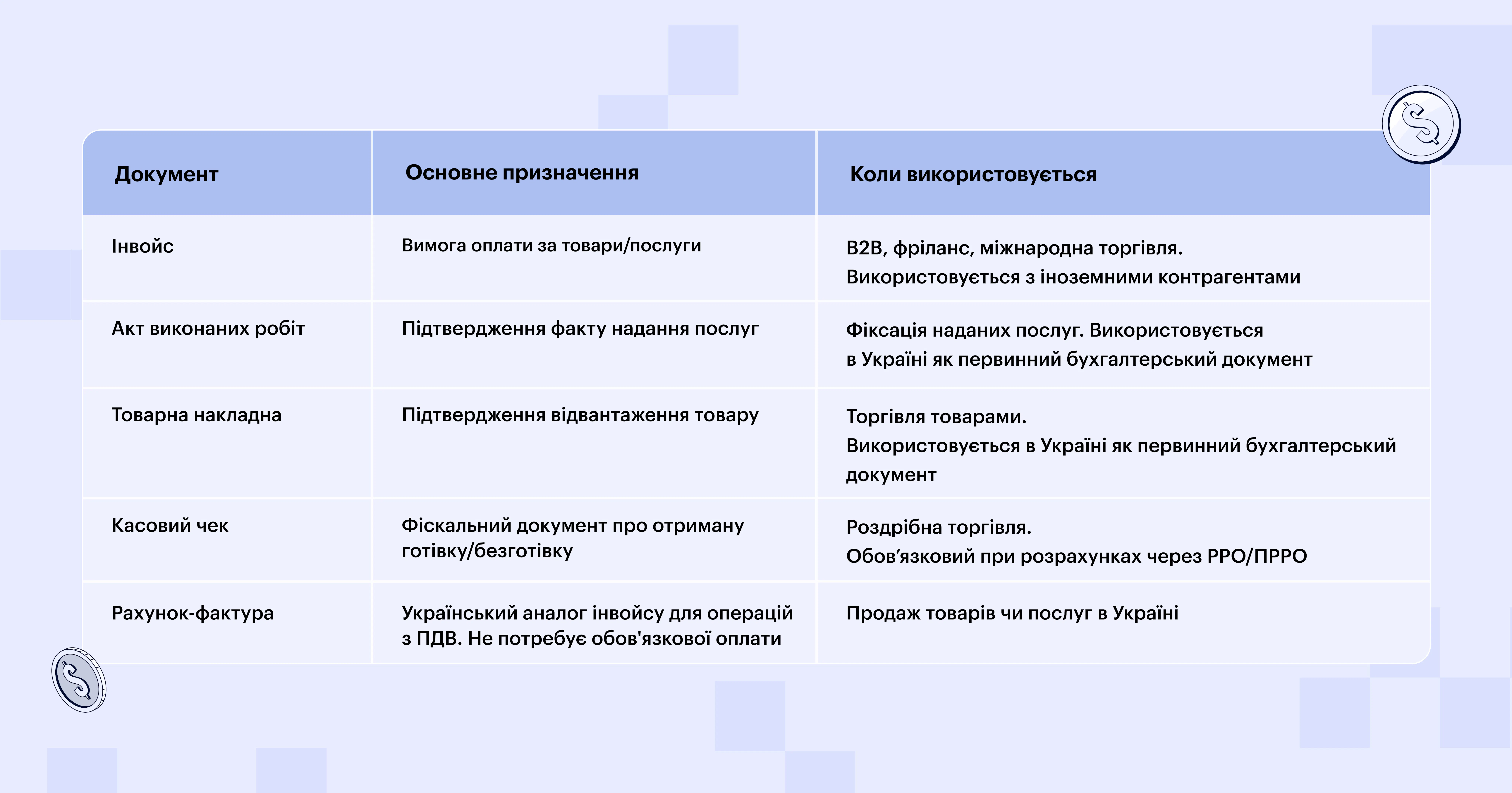 Процес формування інвойсу складається з кількох обов'язкових пунктів: