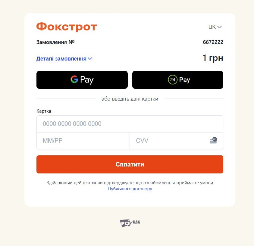 Окрему роль у цьому зіграло впровадження кастомізованого чекауту. Ми прибрали зайві кроки, додали підтримку улюблених методів оплати та додали брендовану айдентику компанії Фокстрот до платіжної сторінки.
